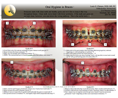 We have produced a one page summary of our oral hygiene sheet, which is being used by orthodontists all over the United States and Canada. For ordering information, please send us an email to .